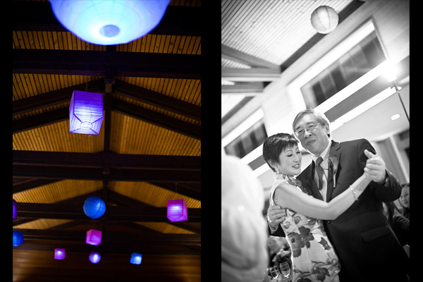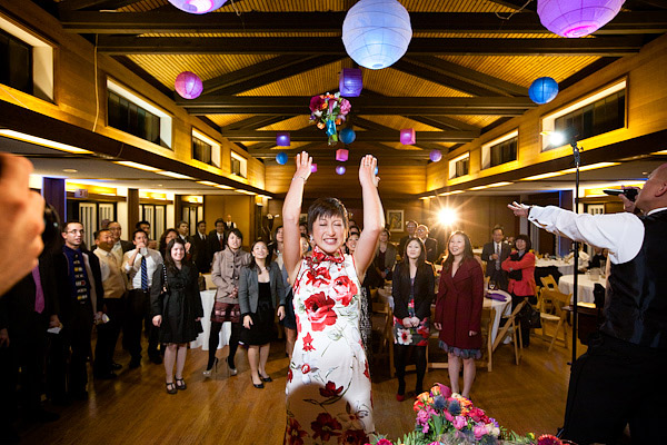 We were running a bit behind but Satra from Nicole Lisanne Weddings had us ready to go. Guests filled every single seat in the Campbell Hall Garden courtyard when Deborah walked down the aisle with her father as Terry played guitar. It was a 16 minute ceremony but we grabbed so many great pictures you’d swear it lasted longer. Temperatures dropped and daylight waned taking the celebration indoors. Finally getting a look around the room, check out the incredible purple flower on the cake flanked by a variety of delicious treats! Look closely at the dessert table, can you figure out what Debora’s profession is? Neat right? After dinner Debora changed into a chipao and the couple wound around the room greeting their guests. Cake, dances, slideshow, and bouquet and garter followed closely afterwards rounding out the evening.